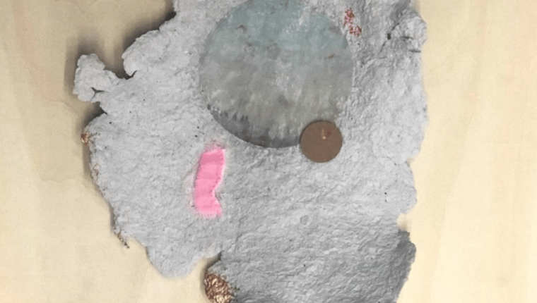 A couple months ago I started making paper after a particularly lively discussion with my mentor about book making. Since then I’ve embraced what started out as a sort of error. I followed a Youtube video to make my first piece of paper. The result was less than desirable, and looked nothing like the paper in the video. My slice of paper was thick, almost chunky, and had rough, wild edges and an odd texture. I decided to try again, this time thinning the pulp more with water. Again, the result was rather ragged and looked nothing like paper. I set it aside, but kept the pulp to try again, next time using a different technique.