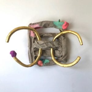 Little Soft Shelf, 2019, linen, thread, ink, paper clay, 24k gold, shredded documents, 6.5 x 10 x 3 inches