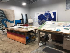 There is something special about this space.  It’s special because we work well in it.  We come in and get to work.  It’s quiet, spacious, and just feels right.  We’re only a 5-minute drive from home, so we can zip back, have lunch, and walk our wonderful dog Miles Blue.  For an artist, a good studio is one that supports art making.  We are fortunate to have just that – a good studio.
