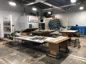 We use lots of tables. We’ve made sure they are all on wheels so we can reconfigure the studio as needed.