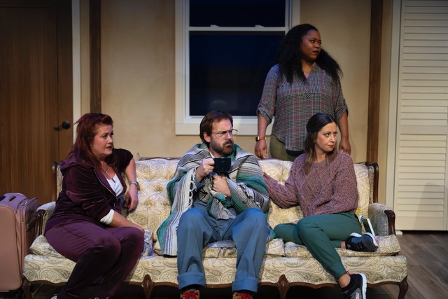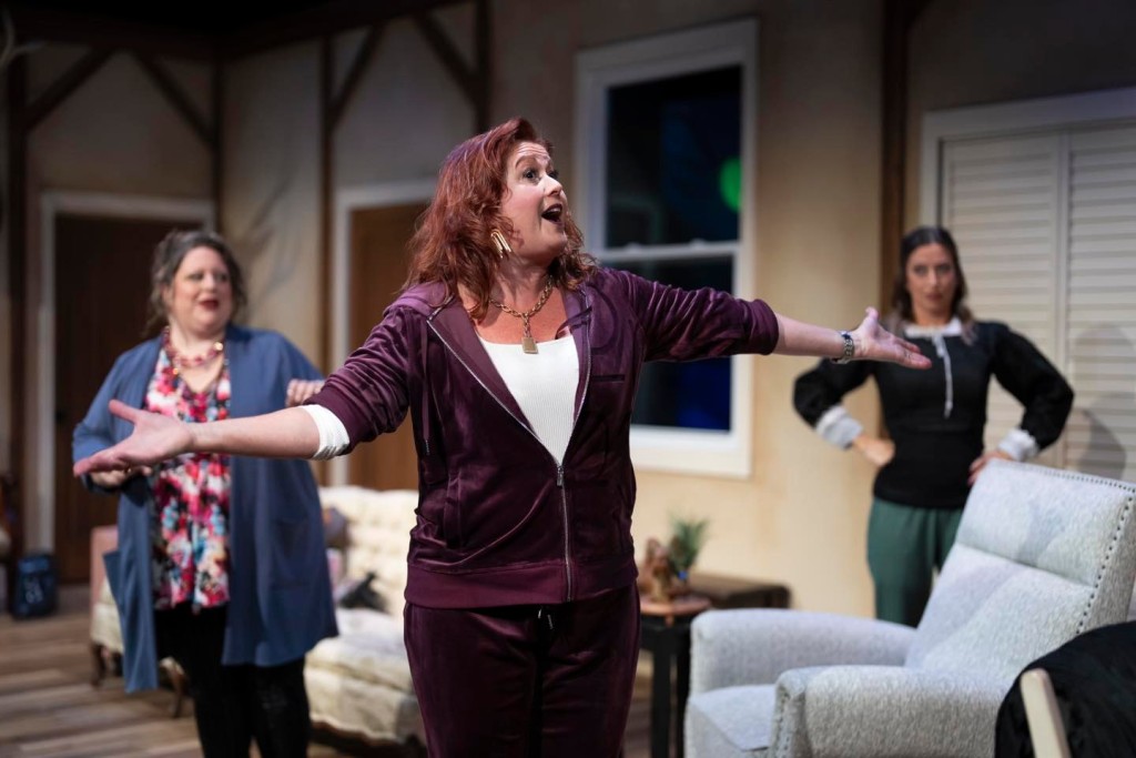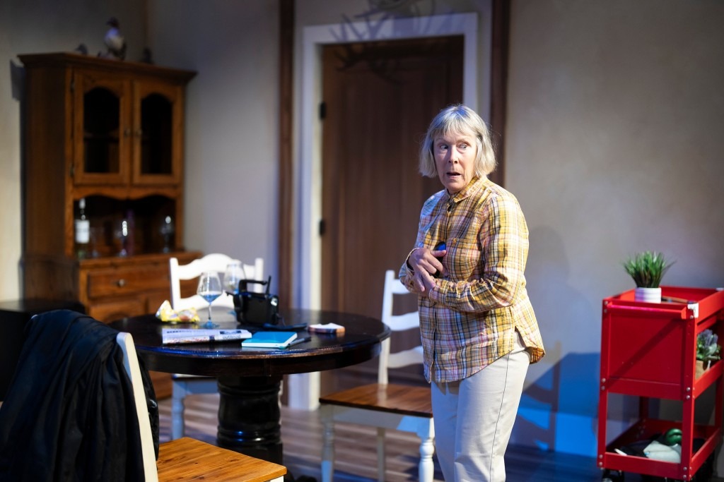 In Symons’ script, the “Hollywood Housewife” of McGee’s original idea has become a has-been actress. Her scandal? Britney Cox (played by Kristin Carbone) was cancelled from an off-Broadway show (way, way off Broadway, in Buffalo, in fact) because she was exposed as falsely posing as a trans lesbian to get into the show. To escape the media fury that ensued, she books a Mystery Weekend at an AirBnB in the Berkshire’s with three women who work for her.