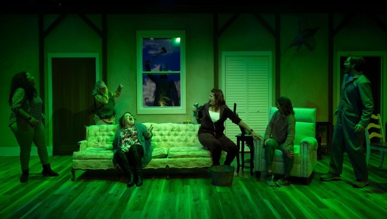 Speaking of horror movies, in Nightsweat those tropes come faster than Friday the 13th sequels. Of course the landlady at the AirBnB would be called Mrs. Bates (minus the son named Norman). But true to the creepy characters of all good horror stories, this Mrs. Bates is not whom she first appears to be. In fact, she first appears to be a corpse that happily comes deliciously alive as one of the major delights of this play which Symons calls an “unapologetic, irreverent comedy.”