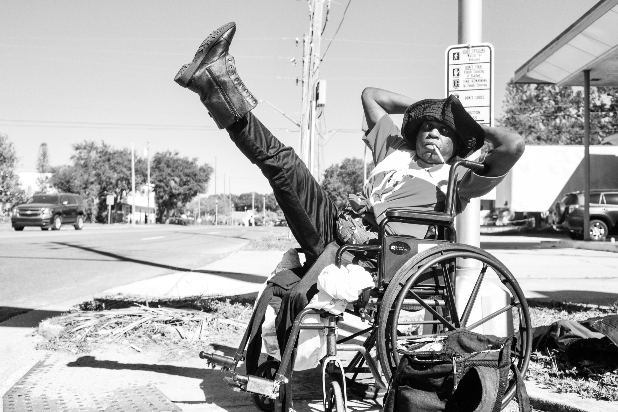 Regarding “Together off the Grid, Together on the Grind,” I rode by the couple in the van on my bicycle. 30 feet later, in my mother’s voice, the camera got real-familiar with me, “Boy, if you don’t turn around and get me that shot…!” Circling back, I began shooting them before I met them, before asking if I could photograph them, knowing that I could get cursed out. After they noticed me, I explained that I was out working on my craft and they were kind about the intrusion and allowed me to continue shooting, closer and closer, till I was practically in the van. That day, thanks to them, I made “The Double Negritude of Attitude,” one of the best images my camera has ever bossed me into taking. It feels like a reward for listening not for knowing how to take a picture. I prefer the joys of the process more so than seeing an actual print. “Just because it’s published, it doesn’t mean you have to read it or read from it” is the most wickedly profound thing my camera has ever said to me.