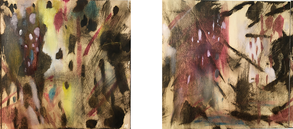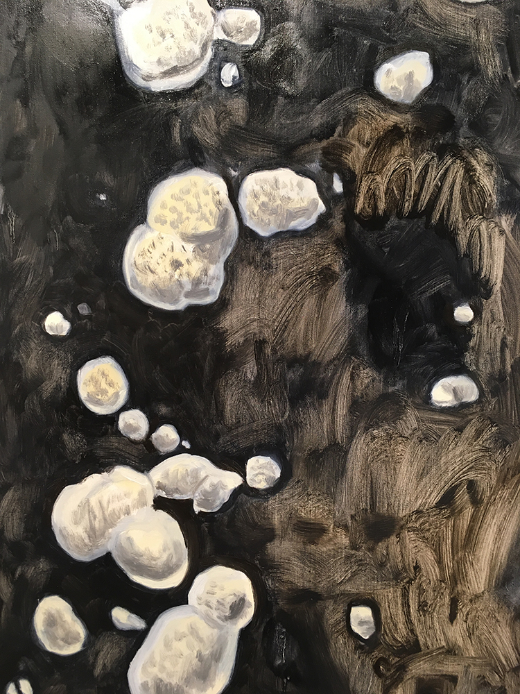 4. These still in process paintings are different, in that the composition and forms were taken directly from actual organic forms, but my approach and style came out of the above exercises.