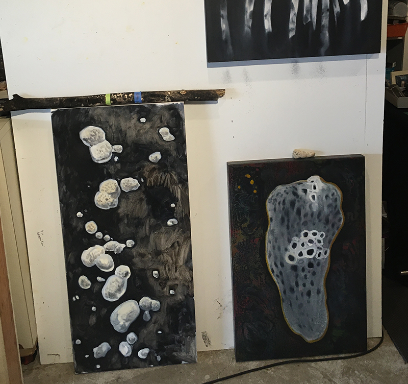 4. These still in process paintings are different, in that the composition and forms were taken directly from actual organic forms, but my approach and style came out of the above exercises.