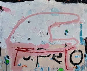 Oil, pigment stick, spray paint on canvas 48″x60″