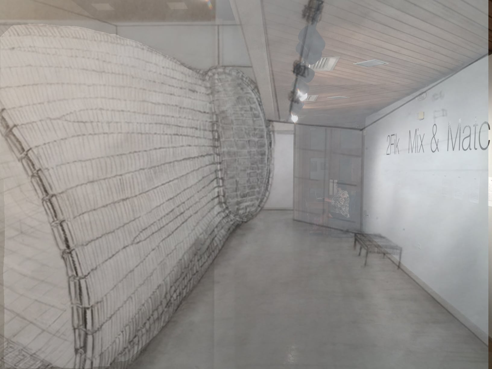 My plan is to construct a massive form that will span almost the entire length of the gallery and will be 19-22 feet in diameter.