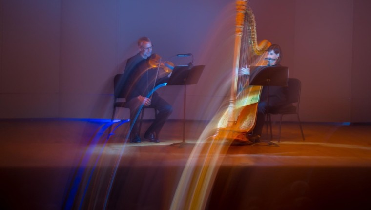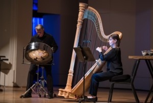 I also performed a piece for steel pan and harp by Andy Akiho called Karakurenai with my husband, who is a frequent chamber music partner and collaborator with me on commissions of new music for harp and percussion. Karakurenai is a beautiful, mesmerizing piece of music written for two players to play completely in unison with each other. It was a challenging piece of music to learn, but it is very beautiful and we enjoyed it immensely, as did the audience.