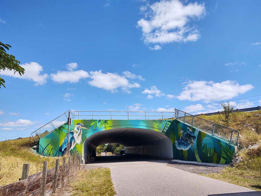 Creative Pinellas and Pinellas County recently hired muralists to create four new murals along the Pinellas Trail. The project is funded by the Pinellas County Transportation Trust Fund, as part of Creative Pinellas’s Local Arts Agreement with Pinellas County to help in their Graffiti Abatement Program.