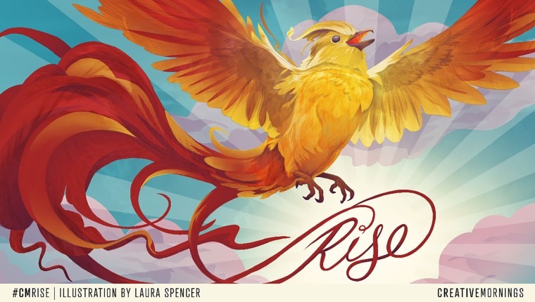 “The phoenix rising from the ashes is such a juicy metaphor,” Creative Mornings writes in its announcement on its website of this month’s theme. “The mystical bird’s fiery demise symbolizes the destruction of old expectations — and how it’s always been done.