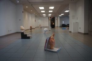 The exhibition space at HCC, Dale Mabry was basically a glorified hallway (which I’m happy they glorified) that was completely open. It was connected to a library and several office spaces so there was a lot of through-traffic. It made for a really unique viewing experience (I really got off on the idea of people doing homework or writing papers with my sculptures lurking behind them). However, the porous quality of the room really let a lot of air in that made my work feel much smaller, a little less focused, and too general (lots of surface details get missed). Going forward, I’d like to see how I can really command a tighter room with more low, freestanding sculptures. I’d also like to be more “democratic” with the makeup of these sculptures. As of yet they’ve been mostly clay. What if they could be equal parts clay and spray foam? Equal parts inside and outside? Equal parts handmade and found objects? Equal parts open and closed? I won’t have time to totally equalize that for the exhibition in September, but it is something I think about a lot and hope to at least be considerably closer to than I was two years ago.