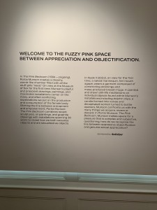 When I first entered the gallery, the wall said “Welcome to the fuzzy pink space between appreciation and objectification”.