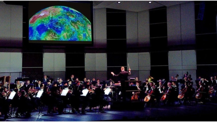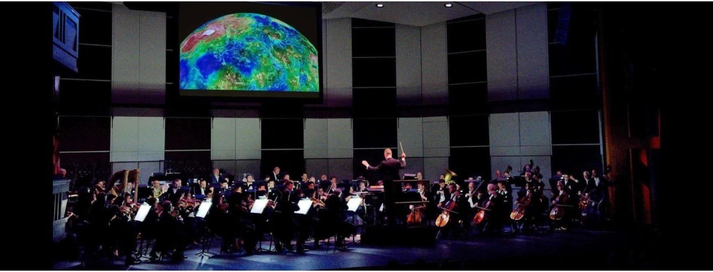 The Florida Orchestra performing Gustav Holst’s “The Planets” on September 30 at St Pete’s Mahaffey Theatre, with NASA images projected overhead. A second performance took place at Clearwater’s Ruth Eckerd Hall on October 1 – photo courtesy of the Florida Orchestra Blog