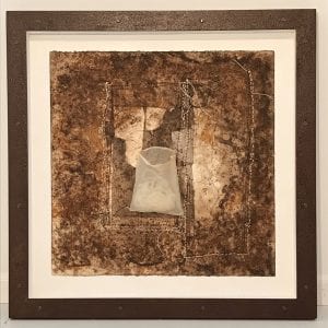 Also this week: I continue work on several pieces in the “Vessel” series. These are the rust and tea stained paintings on paper on panel and framed within a shadow box of rusted steel. The first piece was finished on Friday. This work is promised to a gallery dealer in Atlanta. And we have been in communication this past week. I just sent off an email of some new pieces to him. See one shown below.