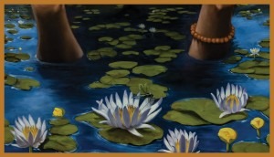 The serene lily pond in the background serves as a metaphor for our connection to nature and the importance of appreciating the present moment. Teeming with life, the pond embodies growth and abundance, with lilies graced by dragonflies and reeds symbolizing the resilience and continuous renewal of life.