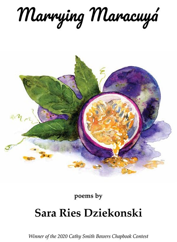 Winner of the 2020 Cathy Smith Bowers Chapbook Contest, Marrying Maracuyá, explores love, life, human relationships and travel in poems that are sonically engaged and visually alive. Sara Ries masterfully weaves prosody and meaning together to enable readers to travel in each poem, to discover – and to fall in love with their own maracuyá, yes – but also with the sense of adventure that comes from jumping into a new experience joyously with both feet.