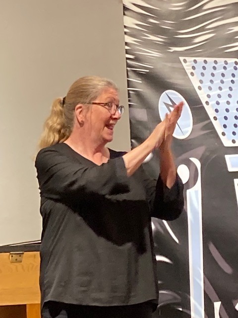 ASL interpreter Carol Downing in action