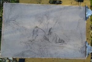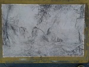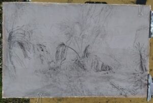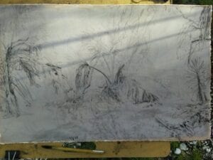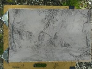 After a week of evening rains, I was able to continue drawing sessions in drier conditions. The images below demonstrate how the drawing is progressing day by day, September 1st-5th. I compose from inside-out.