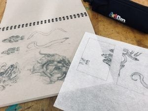 Like many artists, i’m heavily reliant on my sketchbook. I was in 3rd grade when I started my 1st sketchbook. Back then, I strictly used them as a book of drawings. I was very keen on only using it for illustrating, and these illustrations had to be complete and perfect. As I got older, I became less rigid about this device and now I use my sketchbook for just about everything. Within the pages you’ll find poorly handwritten notes, ideas, sketches, plans, etc. All of these elements are conductive to my process and serve as a transparent form of record keeping that I can accurately reflect back on.