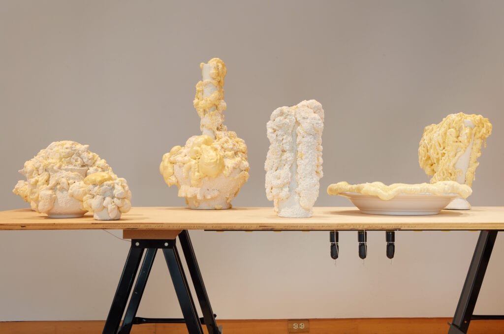 Howard roughly organized the works around material investigation, process, and transformation into visual language. In the exhibition brochure, she writes with detail on each artist and their intent, concluding “Collectively, the works create an expanded dialogue that speaks to our current moment, engaging and reflecting the social challenges of our time.”