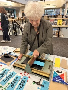 In the digital age of screens and swiping, people are drawn to tangible, homemade booklets. Outside of Tampa Bay, creatives came from Gainesville, Winter Park, and as far as NYC to share their work at SPZF24. Symposium presentations were held in one of the library conference rooms, on topics such as social poetry and fax art, zines as alternative art therapy, and even a zine show & tell. Fifth-generation Floridian, writer, educator, and fellow Emerging Artist Grantee, Tyler Gillespie, read from his upcoming book of poems from Burrow Press. Letterpress bookmarks and gel printing with leaves and natural fibers provided several opportunities for the public to get inky.