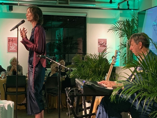 Three “power couples,” as Bonnie Agan called them, also received recognition – Dalí Museum director Hank Hine and his wife Laura, who chairs the Pinellas County School Board; Palladium Theater director, author and musician Paul Wilborn and his wife Eugenie Bondurant, actor, singer, model and acting coach; and playwright and Sparks Collaborative Ensemble founder Sheila Cowley and her Foley artist/playwright husband Matt. Bondurant, Wilborn and the Cowleys all moved to St. Pete years ago because of Bob and The Studio@620.
