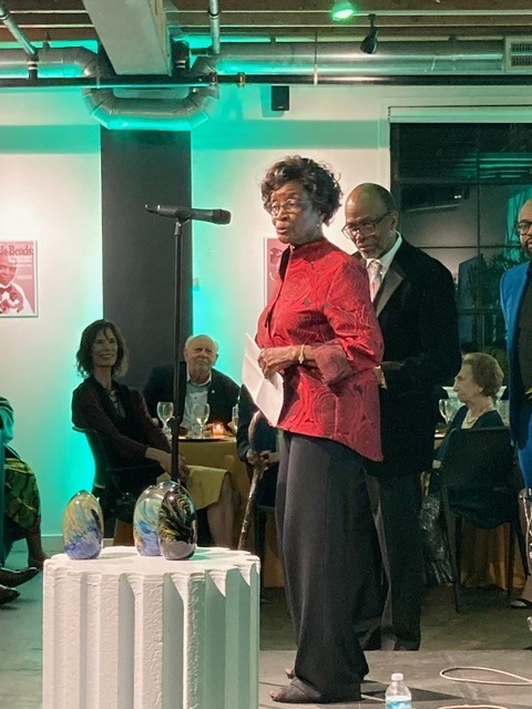 General Honor Awards also were given out to arts and entertainment reporter Virginia Johnson (“I’ve bothered so many people who are here tonight, put a camera in their face. I think that Bob is infectious because a lot of people here just say yes all the time”); County Commissioner René Flowers (who dressed in beautiful African regalia); and civil rights activist Mozell Davis (“I think I am the most senior member in the room with memories of this city that others don’t have”).