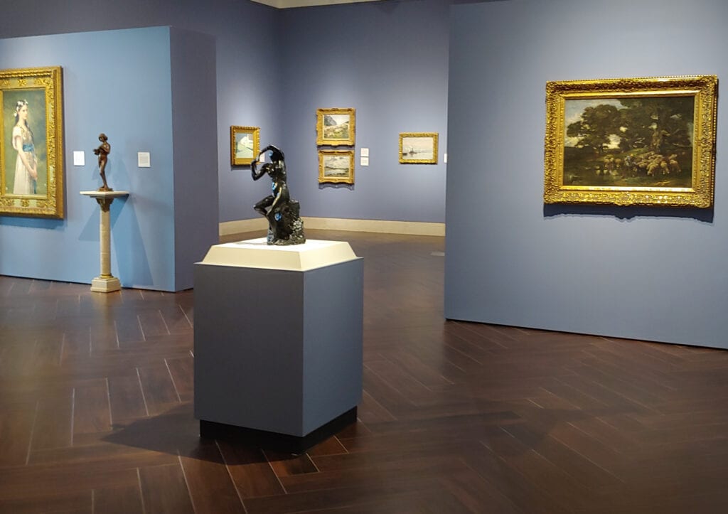 We return to normal size when we enter the European and American Art of the 19th and 20th Centuries gallery. Calming Wedgewood-blue walls set off landscapes and portraits by some of the best artists of the day working on both sides of the Atlantic. This room brings the outdoors inside. It’s fresh, restful and airy.
