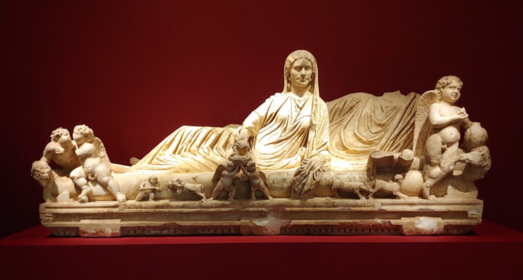 We’re then lured into the adjacent room by its seductive deep red glow – all the better to show off the white marble statuary. My immediate impression was that of the meat and bone of an elegant abattoir. Sculptors are butchers in a certain sense. This room reminds us that cool-to-the-touch figurative stone carvings are actually depictions of warm skin, soft flowing fabrics, rippling muscle and taught sinew.