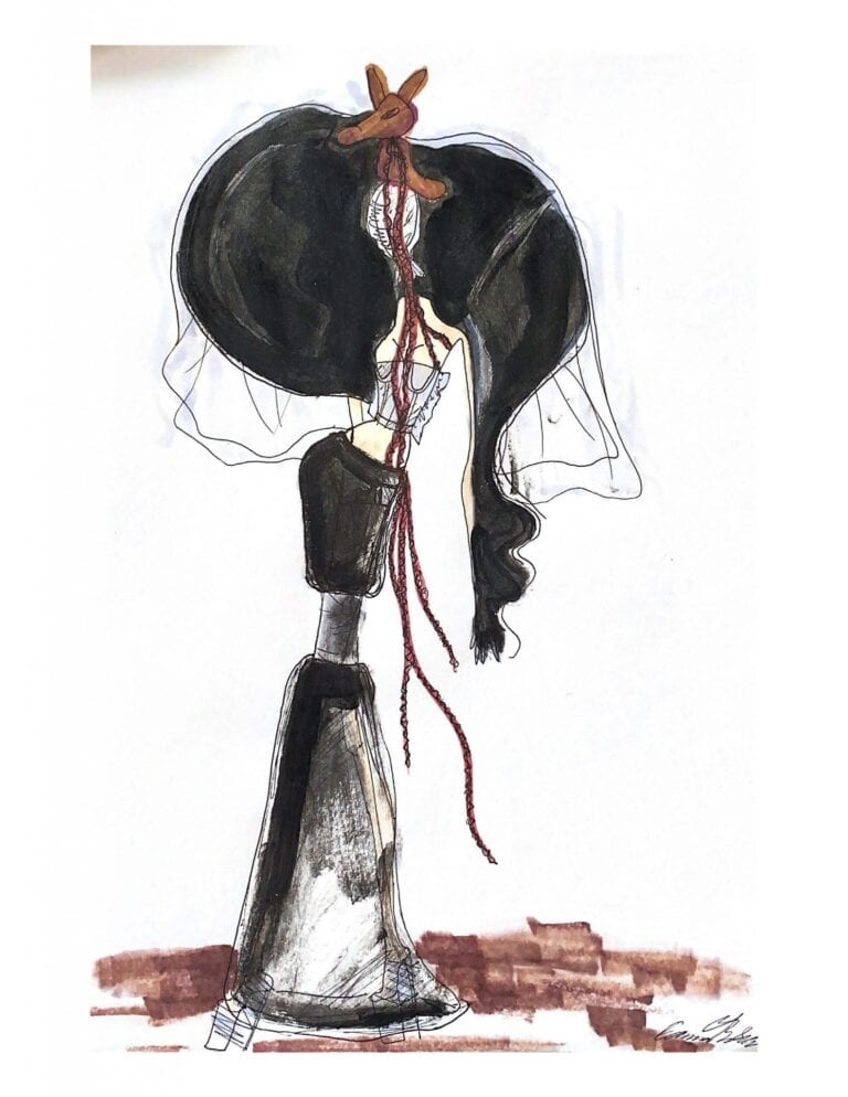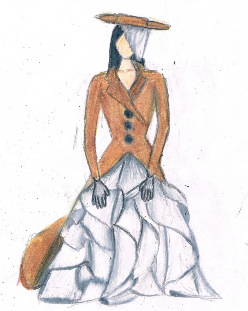 Design by Isabella Ancheta, Wharton High, Grade 10, inspired by the film Destino. “I want to bring forward the concept of seeing your destiny in a dream; destiny seeming hazy and almost confusing at times.”