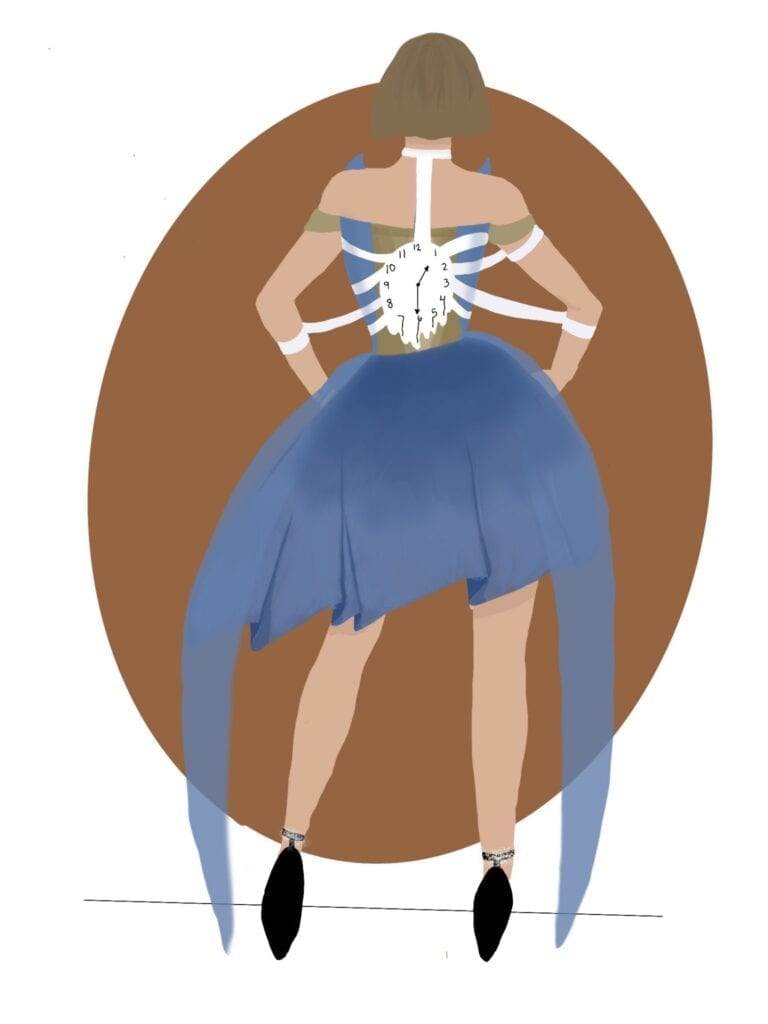Students viewed and chose from three of Dalís collaborative film efforts – Un Chien Andalou (An Andalusian Dog) (1929, with Luis Buñuel), Destino (1946, with Disney) and Spellbound (1945, with Hitchcock). Thirteen weeks of Zoom classes followed to discuss the films, fashion, Dalís symbolism and how to write an artist statement — also known in the costume design industry as a justification.