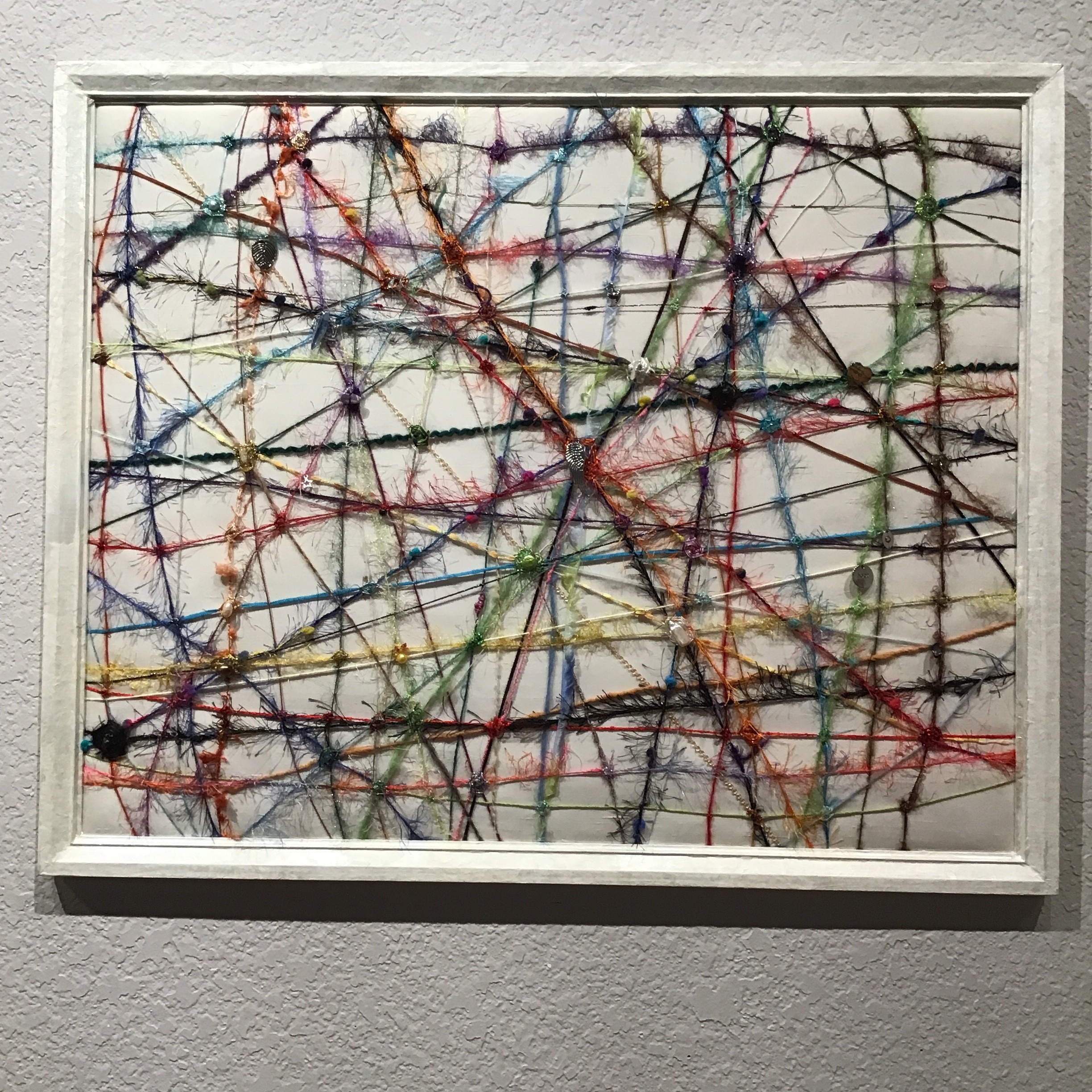 My second favorite piece is a triptych of small embellished, beaded and embroidered felt assemblages titled Joy #1, Joy #2 and Joy #3 by artist Anna Jonsdottir. I used to be a beader and responded to the colors and rich textures of her pieces. They elicit joy. After reading her narrative, I got why the Joy series has such appeal.