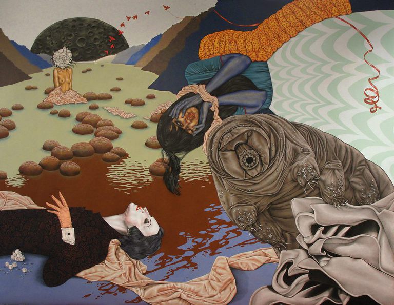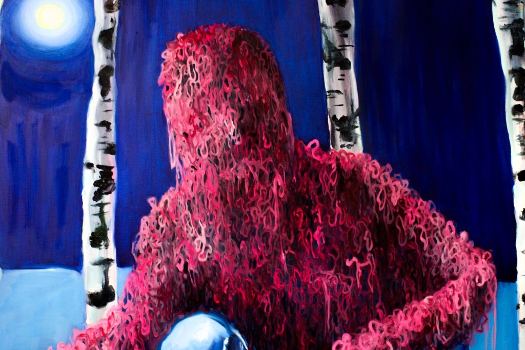 It really came out of exploring fears and desires and feelings I had about my identity. And then it evolved into using animals and inanimate objects and environments and patterns and things like that to flesh out this sort of allegory – and that sort of dictated what the figure was doing or what was important about their story.