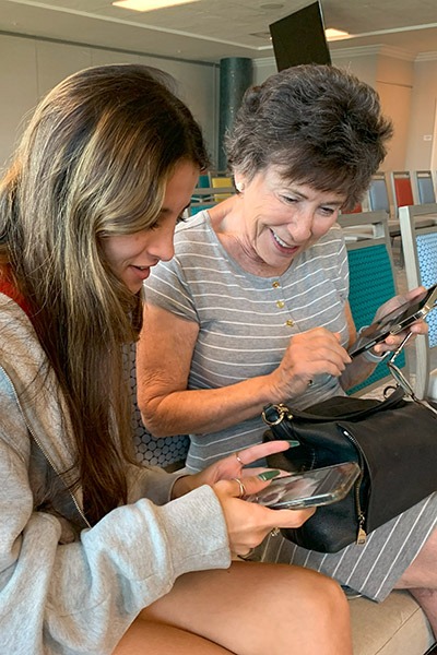 Nadia Plechaty, a sophomore sociology student from Littleton, Colorado, spent much of her time helping Carol Dowd, an AARP member from nearby Tierra Verde, with her laptop. “The connection is my favorite part,” Nadia says. “Hearing about their lives, what they’ve done and the places they’ve been — it makes me feel like I’m doing something good for them besides helping them with their technology issues.”