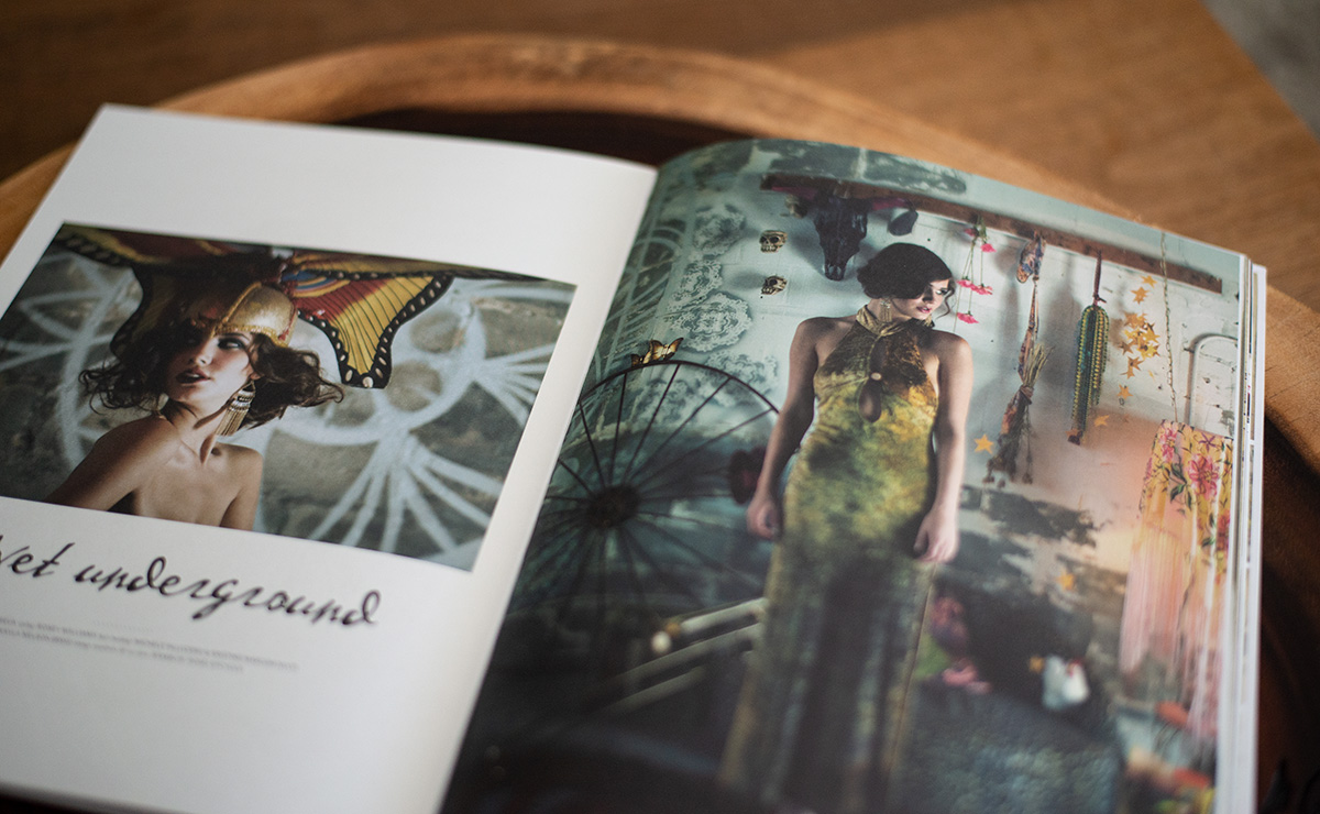 It all started with photography. I fell in love with film when I took a class in high school, and returned to it after college. I became focused on fashion editorial photography, telling stories through clothing, set and props, publishing my work in Indie fashion magazines across the globe. My style suited magazines like Peppermint more than the likes of Vogue. Gradually, as I worked my way towards portraiture and telling stories through expression, pose, and eye contact, I started using mixed media to add texture and depth to my work. I was no longer satisfied with fashion photography, I started to find it limiting and shallow, no matter what I did.