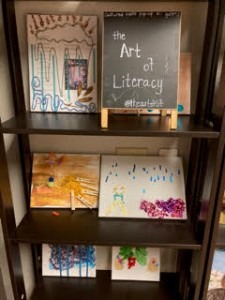 Among the books and artwork on display at the pop-up store are paintings and collages kids produced after reading a book. Thanks to the bookstore’s unique program, The Book Report Project (see details in sidebar), kids read a book and then create a book report in any form – from an essay to a piece of art to a podcast – which they can exchange for another book.