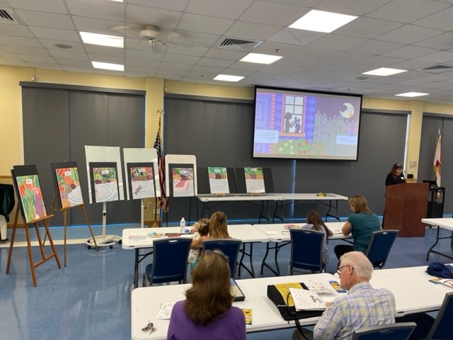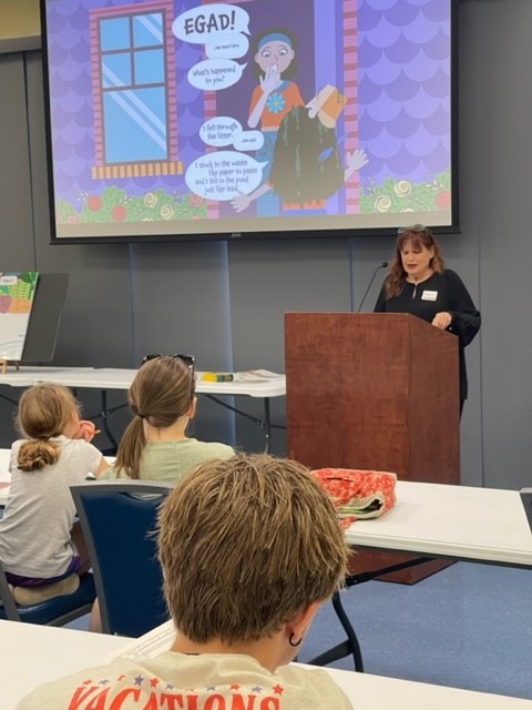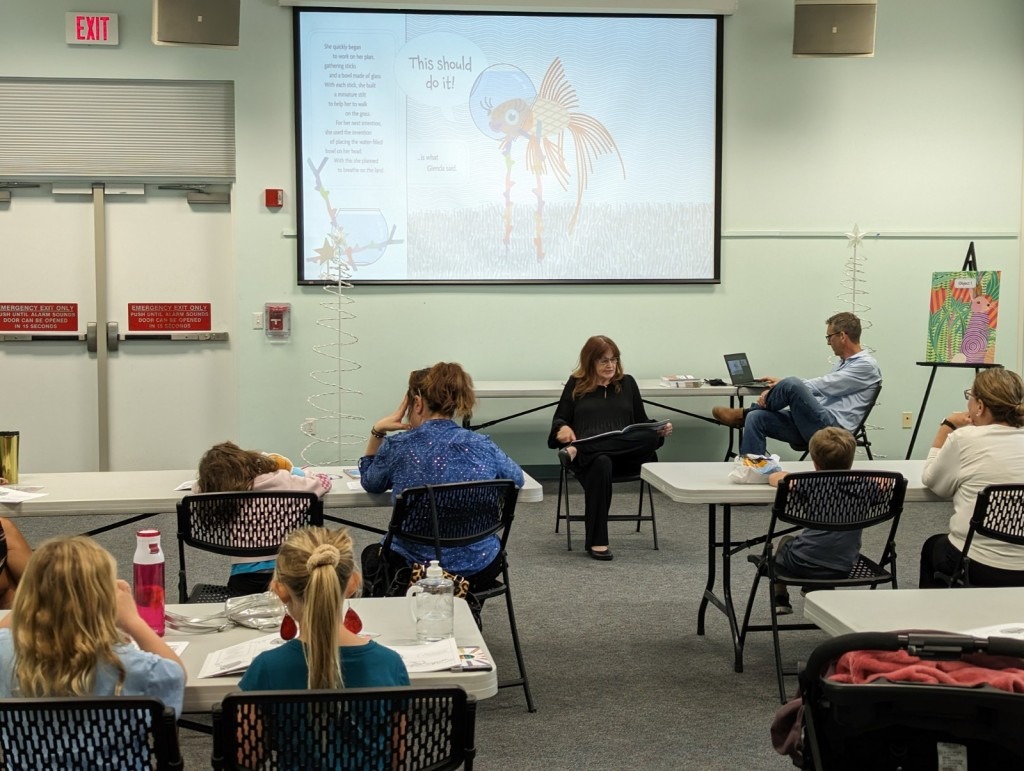 Pamela J. Trow reading “There’s A Crystal Clear Pond, The Unseen World of Water Pollution” at the Dunedin Public Library