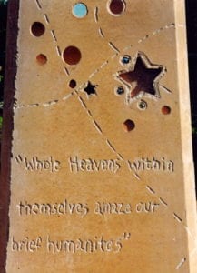 “We can start that ball rolling… put our best foot forward … every salmon that swims, every heart that beats, every star that shimmers in the sky is a seamless web. From snowflakes to quasars, blue whales to the gamma ray, they’re all interpenetrating you and me.” – Ezmeralda