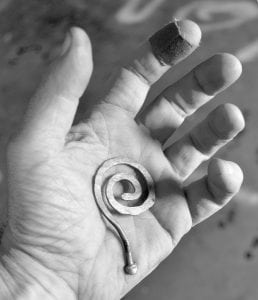To me, the process of working in steel is very much like working in clay, where a little chunk of clay is added to an armature until the figure is achieved. In my case it’s a little chunk of metal. You may say clay is more forgiving, more malleable – true, but metal is also malleable and flexible to a degree.  Also, clay has to go through an elaborate time consuming process and be fired twice to become hard and permanent, while metal is instantly solid and permanent once welded. And you can bash on steel with a hammer to further refine the shape, try that with a piece of fired clay. Both methods have their advantages and disadvantages, as do all mediums. The difference I believe, is in the temperament of the artist who controls the materials.