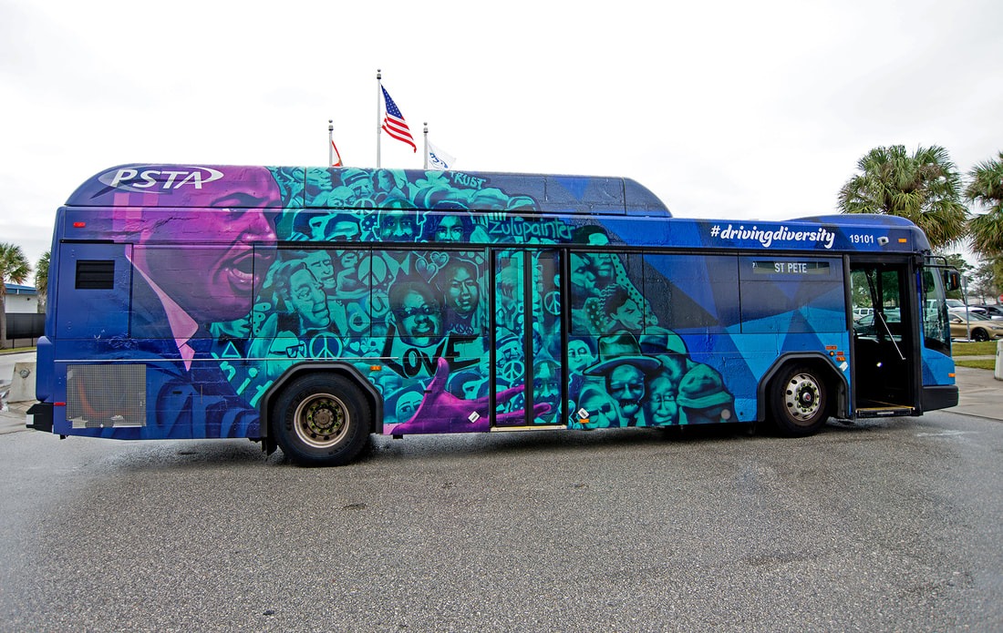 Zulu Painter’s vibrant mural work is seen throughout downtown and south St. Pete and now in Denver, Chattanooga, Atlanta, Austin, Miami, Las Vegas and Los Angeles.