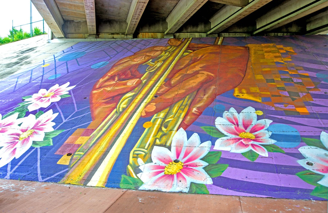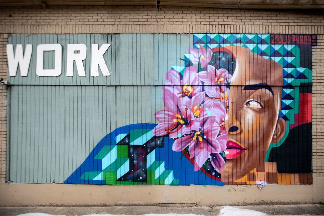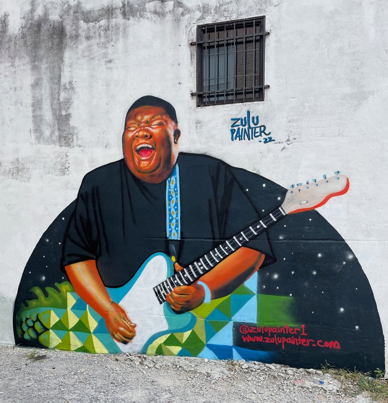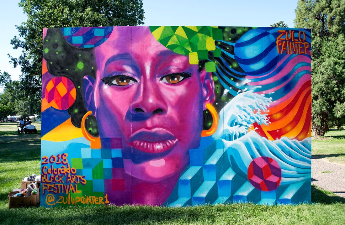 He’s a multi-media artist who works in traditional mediums as well as body paint, special effects and scenic art. But Zulu Painter’s murals are what you see most often — big, bold, beautiful and very personal expressions that celebrate community, family and his goal of creating Art that uplifts the viewer with positive energy.