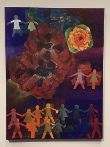 “Everyone Is Gay,’” are happy transformed people. I’ve used these cutouts in my work for many years. It felt right for me to use them again as a remembrance of Mary Todd Beam who was an important influence on my artistic expression. They remind me of children laughing and playing. We bring those memories with us throughout our lives. The gaiety comes from being in the light like a rainbow of colors.