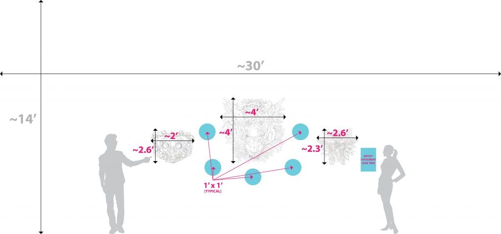 The following pieces are all inspired by 3 very important women who have come to pass – my 3 grandmothers: Mary Sanchez, Ellen Harkonen, and Marjorie Long. Within each piece, the animal and element is representative of their wisdom, strength, and personality. The rendering of these pieces will be vibrant and psychedelic in nature – evoking an ethereal “vision” and transformation of their spirits into eternal, ephemeral effigies.