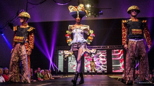 Models Chris Blauvelt, Samantha Jane and Josh Dexter, like the rest of the cast in Urban Play wore fashions composed of 95 percent recyclable materials — plastics and trash found, you guessed it, around the city.