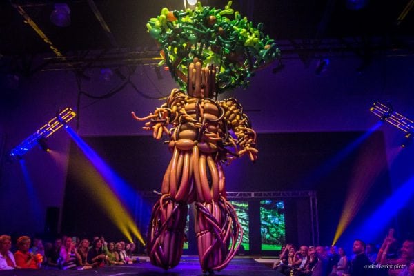 A show stopper, Billy Damon as a tree, one of the tallest, most complex and enormous balloon creations in Mark Byrne’s collection.
