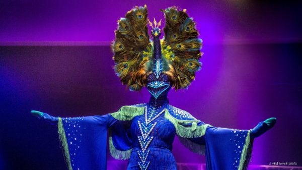 Model Ann Byal Feldshue goes full diva as a Peacock-inspired character designed by Saretsky in 2015 for a living art performance at Kikimora Studio.