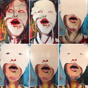 In 2015, I was resurfacing from the recession depression and started dreaming again with an art future in mind. By 2017, I was invited to participate in Studio Waltz, a local artist collective with an annual two day show. This gave me the motivation to create a body of work. The Deconstructed Self Portrait series was born and it represented years of pent up artful energy centered in emotional processing and experiences I had in therapy. The imagery, style, and subject matter is a distinct representation of what and how I paint.