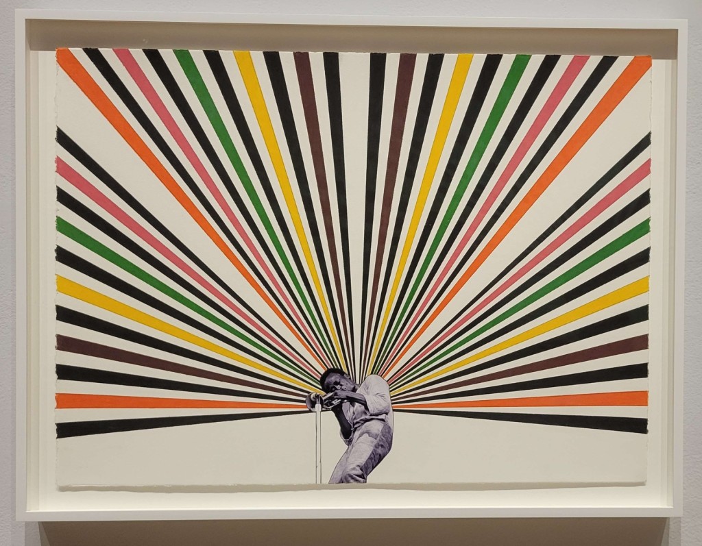 The warm colors radiating from Miles and Don represent the liberation of soulful expression – music. The black bands radiating off of Elbert and Sidney allude to the spirit of protest, while Dick’s red and green take on a statement for bringing change and peace within the Pan-African colors. And Alice’s blue hues present calmness but sadness.