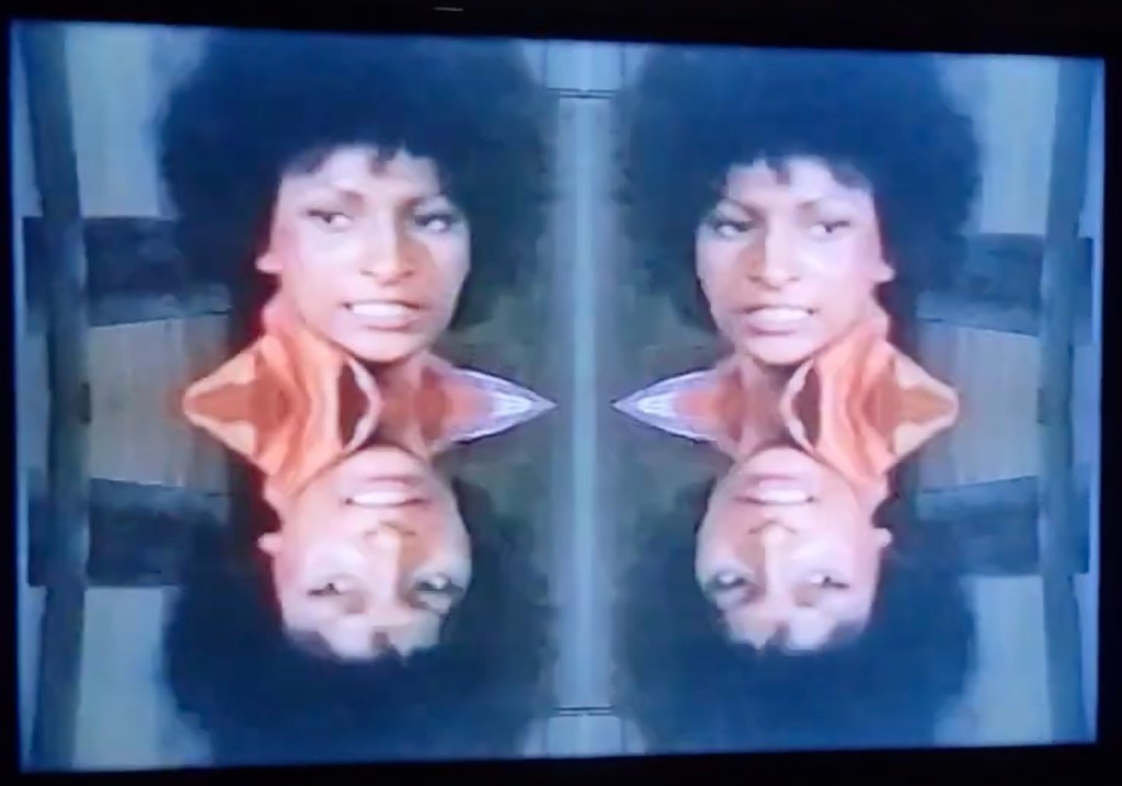 Gun Play, 2001, screenshot. Single channel video, color, sound, 2:37 min. Gatson’s kaleidoscopic film collage mixes moments from Jack Hill’s 1974 blaxploitation film “Foxy Brown” with Sergio Leone’s 1966 spaghetti Western “The Good, the Bad, and the Ugly”