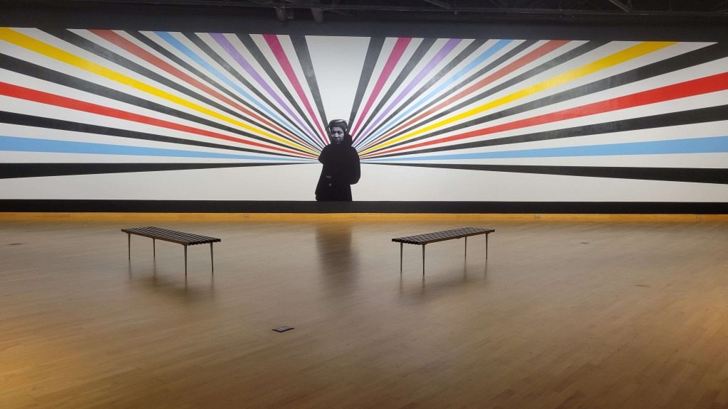 The end of this exhibition focuses on Kathleen Cleaver and her speech for the Black Panthers Party in 1968 after police murdered her 17-year-old son, Bobby Hutton. When She Speaks displays moving Africana-based colored shapes that sometimes flash with the beat of claps, and allow glimpses of her gaze to be noticed.
